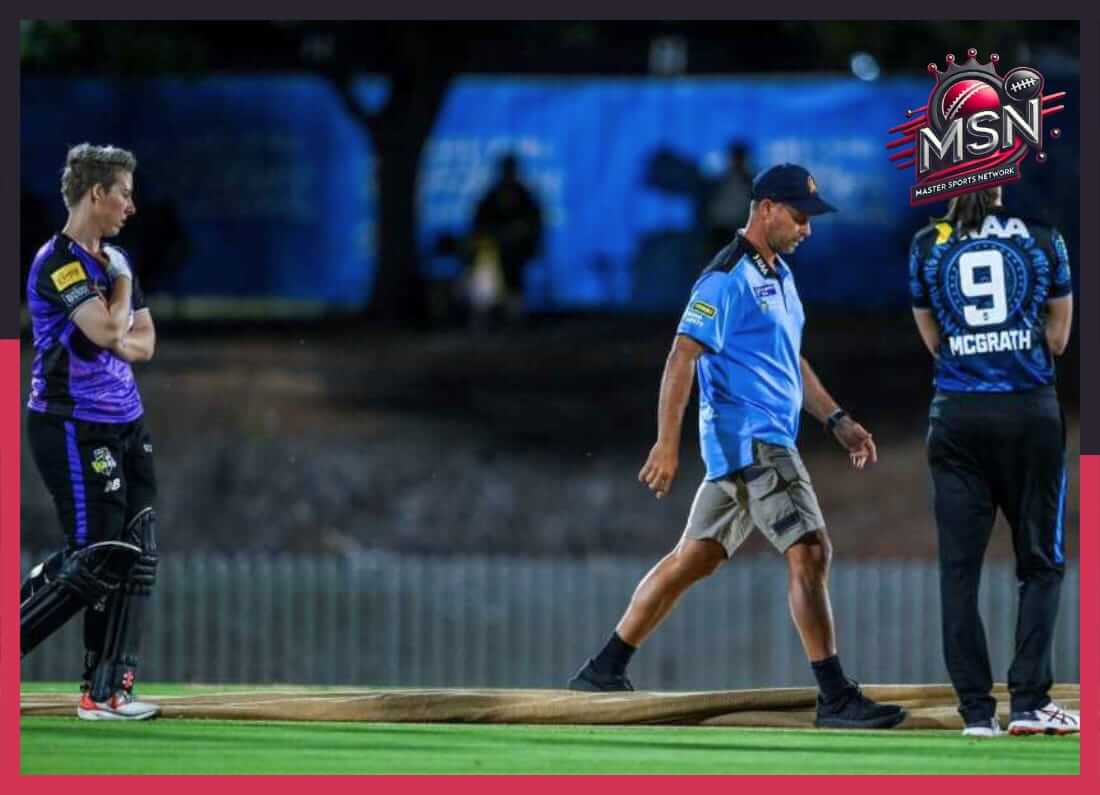 The clash between Adelaide Strikers and Hobart Hurricanes at Karen Rolton Oval ended in a bizarre no-result after a stray…